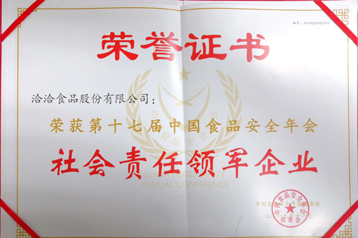 十七届中国食品安全年会社会责任领军企业